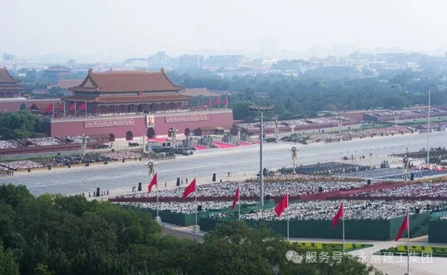 上午9时,永富建工集团组织全体党员和员工在集团党群活动中心集中观看纪念中国人民抗日战争暨世界反法西斯战争胜利80周年大会直播。